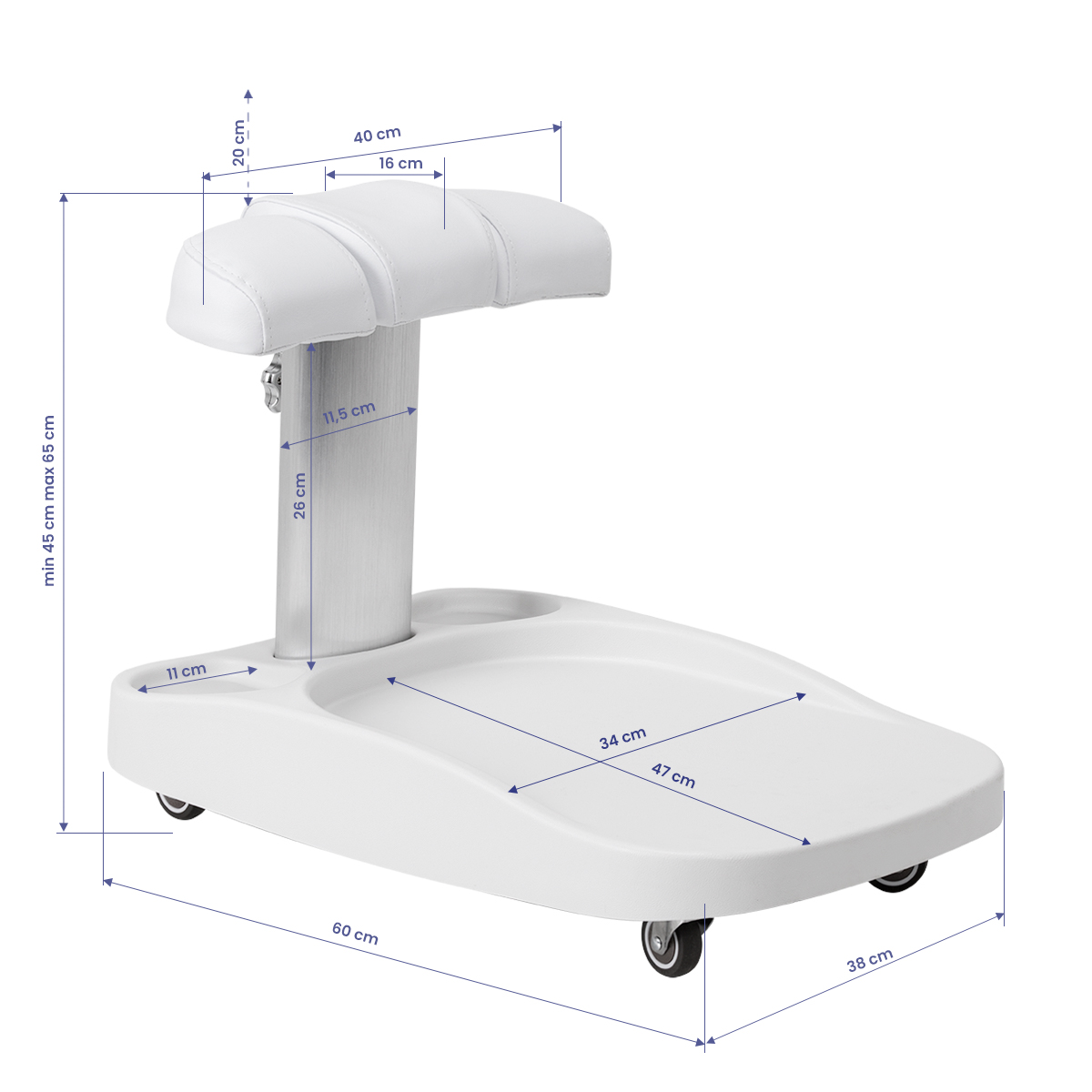 Der Azzurro Fußbadwagen in Weiß ist ein unverzichtbares Element für Kosmetik- und Podologiepraxen. Mit seiner verstellbaren Fußstütze erleichtert er die tägliche Arbeit und sorgt für optimale Mobilität am Arbeitsplatz. Eine perfekte Lösung für alle Profis, die Komfort und Effizienz schätzen.