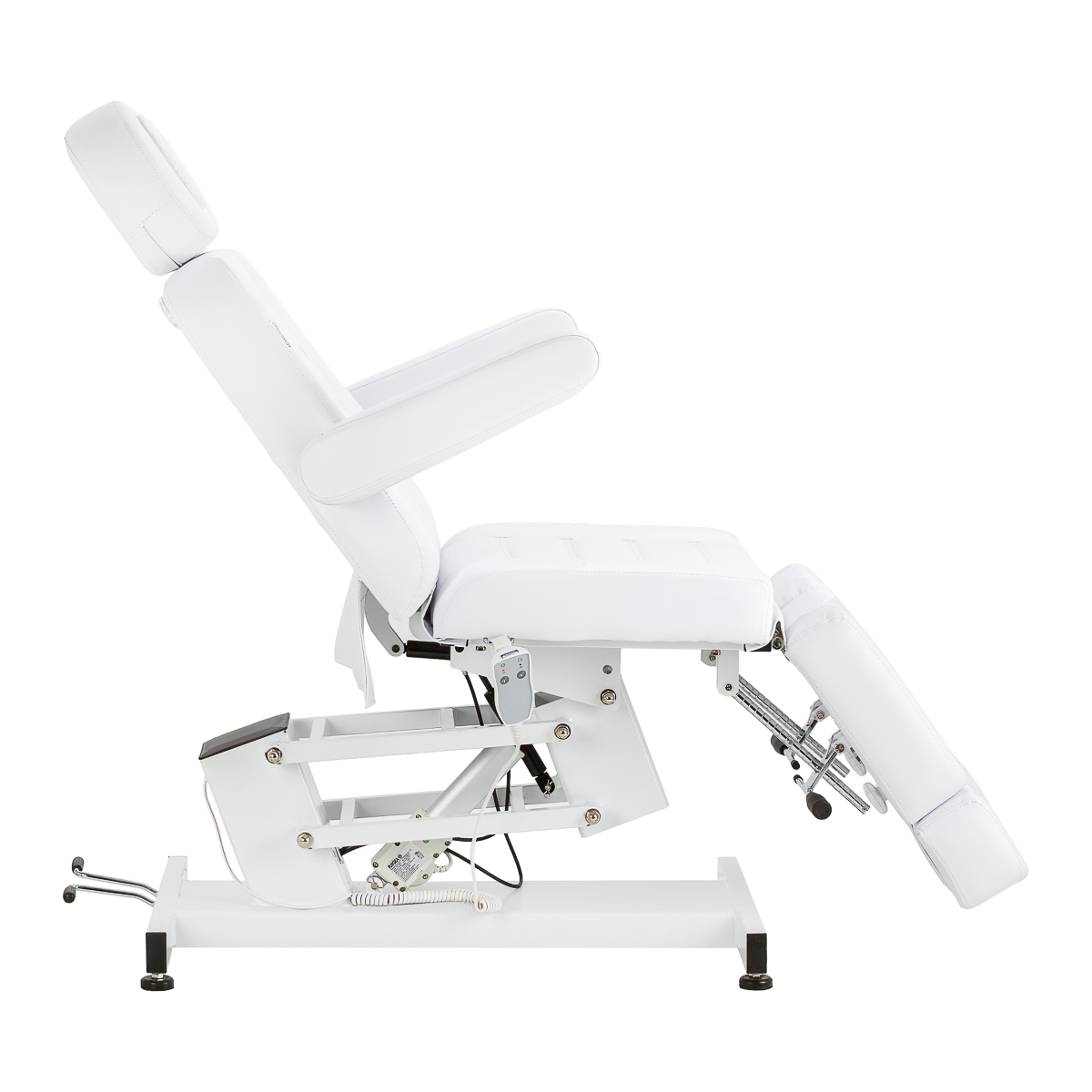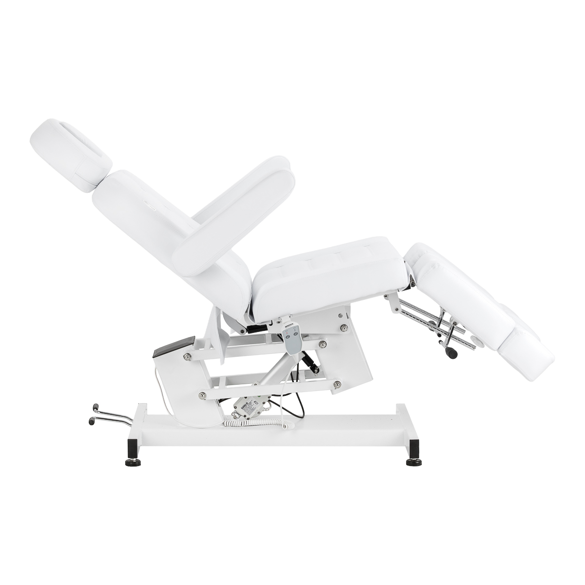 Der elektrische Kosmetikstuhl Azzurro 706 ist eine moderne Lösung, die speziell für Podologen und Kosmetikerinnen entwickelt wurde. Mit seinem elektrischen Antrieb und der manuellen Neigungsverstellung der geteilten Fußstütze und Rückenlehne bietet er höchste Flexibilität bei der Behandlung. Die integrierte Schaukelfunktion ermöglicht eine präzise Einstellung aller Liegekomponenten für optimalen Komfort von Behandler und Kunde.