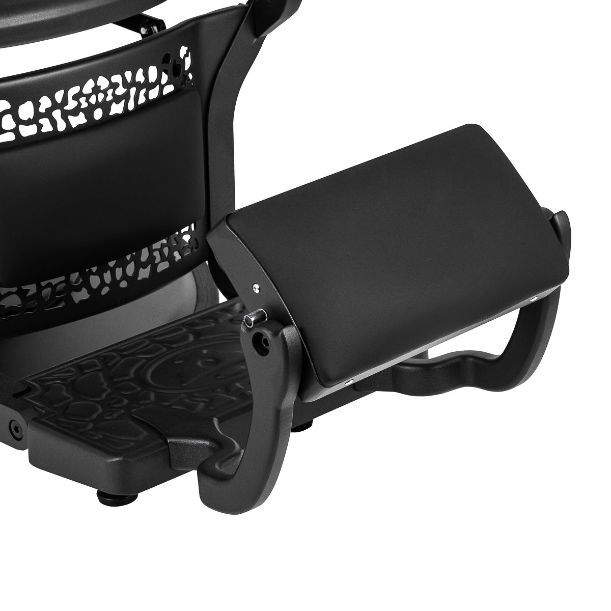 Ein bequemer, mit Schaumstoff gefüllter Sitz garantiert dem Kunden Komfort bei verschiedenen Dienstleistungen. Die konturierte Rückenlehne ermöglicht eine komfortable Position und bietet eine hervorragende Rückenstütze, was besonders bei längeren Behandlungen wichtig ist. Die Ausstattung des Stuhls mit einem Vollrotationsmechanismus macht die Arbeit effektiver und komfortabler. Die gepolsterten Armlehnen, die in der richtigen Höhe platziert sind, ermöglichen eine korrekte Positionierung der Schultern des Kunden – dies verhindert, dass der Kunde seinen Kopf in die Schultern vergräbt oder sich krümmt – was präzise Behandlungen erheblich erleichtert. Der Handtuchhalter unter der Armlehne beeinflusst die Effizienz der Arbeit erheblich. Der Spalt zwischen Rückenlehne und Sitz erleichtert die Reinigung des Salons, da er eine effiziente Entfernung von Haaren aus allen Ecken und Winkeln des Stuhls ermöglicht und die Vorbereitung des Arbeitsplatzes für die nächsten Kunden beschleunigt.