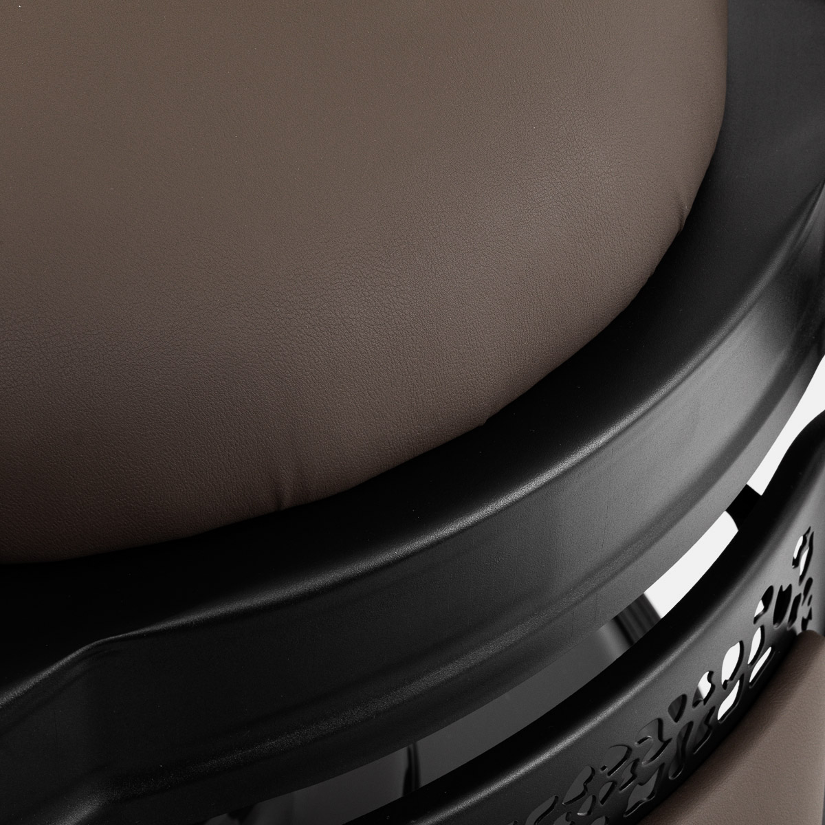 Die solide Konstruktion der Basis sorgt für Stabilität und hohen Nutzungskomfort. Die Sitzfüllung aus strapazierfähigem, verformungsbeständigem Schaumstoff und die Polsterung aus angenehm anzufassendem Kunstleder mit mattem Finish sorgen für eine lange Haltbarkeit des Möbels und einen komfortablen Gebrauch über lange Zeit. Die verwendeten Materialien machen das Gerät zudem feuchtigkeitsbeständig, langlebig und leicht zu reinigen. Der Bezug in Brauntönen sowie der verzierte Fußhocker verleihen ihm einen einzigartigen Charakter. Der Stuhl mit seinem charakteristischen Design, das den Vintage-Stil aufgreift, passt perfekt zur Atmosphäre von Friseursalons und unterstreicht deren einzigartige Atmosphäre.