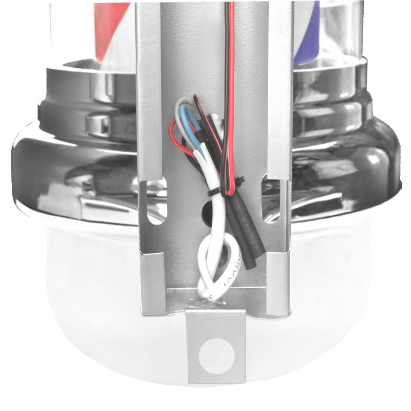 Ein auffälliger beleuchteter Plafond, ausgestattet mit einem rotierenden Zylinder, ist eine hervorragende Werbung für einen Friseursalon. Das markante Design mit rotierenden Elementen in Rot, Weiß und Blau schafft ein einzigartiges, international verstandenes Schaufenster des Friseursalons. Mit Hilfe einer Fernbedienung am Kabel können Sie sowohl die Beleuchtung als auch die Drehung der Deckenleuchte einschalten.