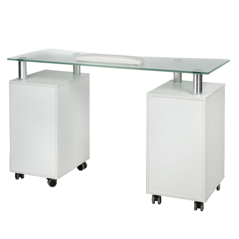 Elegance Pro Maniküretisch Weiß - Mobiler Salon Arbeitstisch mit Glasplatte