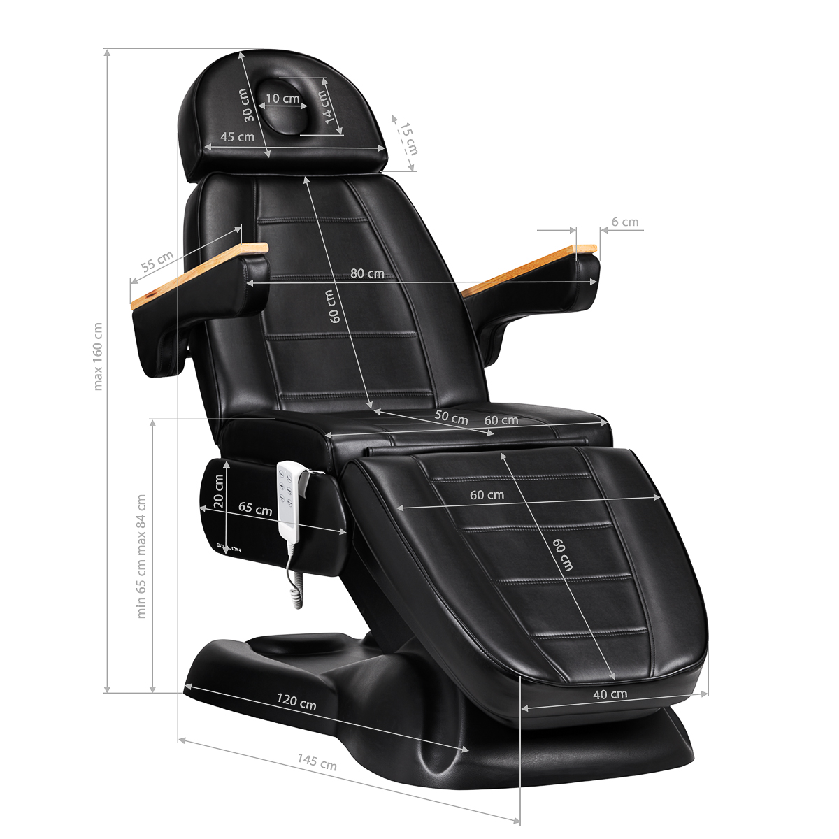 Elektrische Kosmetikliege SILLON LUX 273B mit 3 Motoren in Schwarz - Premium Behandlungsliege