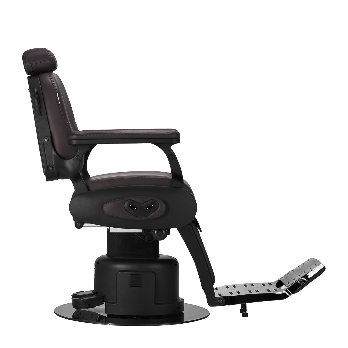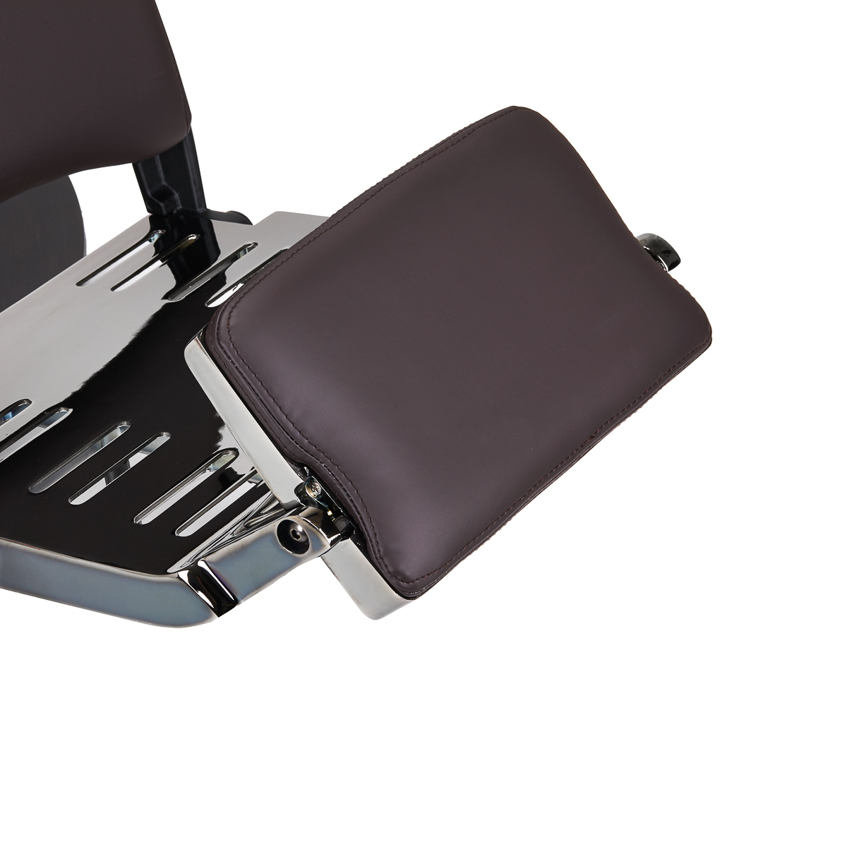 Die konturierte Rückenlehne und die um 30 cm ausziehbare Kopfstütze garantieren eine komfortable Unterstützung für Rücken und Kopf, was besonders bei längeren Behandlungen wichtig ist. Der Schwenkmechanismus macht die Arbeit effizienter und erleichtert den Zugang zum Kunden von allen Seiten, auch in kleinen Räumen. Der Sessel lässt sich in eine halb liegende Position zurücklehnen. Diese Einstellung bietet bei bestimmten Diensten einen besseren Zugriff. Armlehnen in der richtigen Höhe ermöglichen eine korrekte Positionierung der Schultern des Kunden – das bedeutet, dass er seinen Kopf nicht in den Schultern versteckt oder krumm sitzt – was die Durchführung präziser Behandlungen erheblich erleichtert.