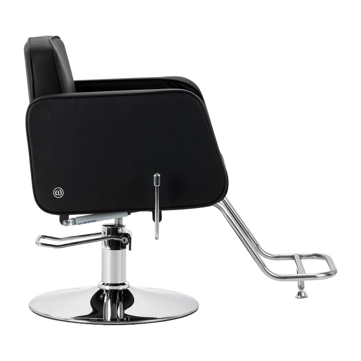 Der robuste hydraulische Hubmechanismus ermöglicht eine stufenlose Höhenverstellung des Sitzes im Bereich von 48 bis 58 cm, auch während der Nutzung des Stuhls. Diese Lösung fördert die Arbeitsergonomie und ermöglicht eine einfache Anpassung der Position an die Körpergröße des Kunden und des Friseurs. Die entsprechend geformte Rückenlehne sorgt für eine stabile Stütze des Rückens und fördert so eine bequeme Haltung auch bei längeren Behandlungen. Die integrierte Fußstütze erhöht den Komfort und bietet einen stabilen Halt für die Füße.
