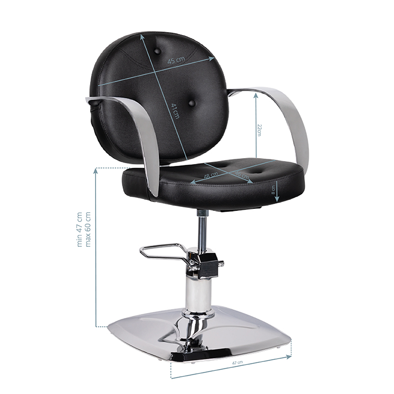 Dieser komfortable Friseurstuhl besticht durch sein modernes Design und passt perfekt zu jedem zeitgemäßen Friseursalon. Der Sessel überzeugt mit stufenlos verstellbarer Sitzhöhe – ideal für ergonomische Arbeitsbedingungen und optimalen Kundenkomfort während Haarschnitt, Färbung und Styling.