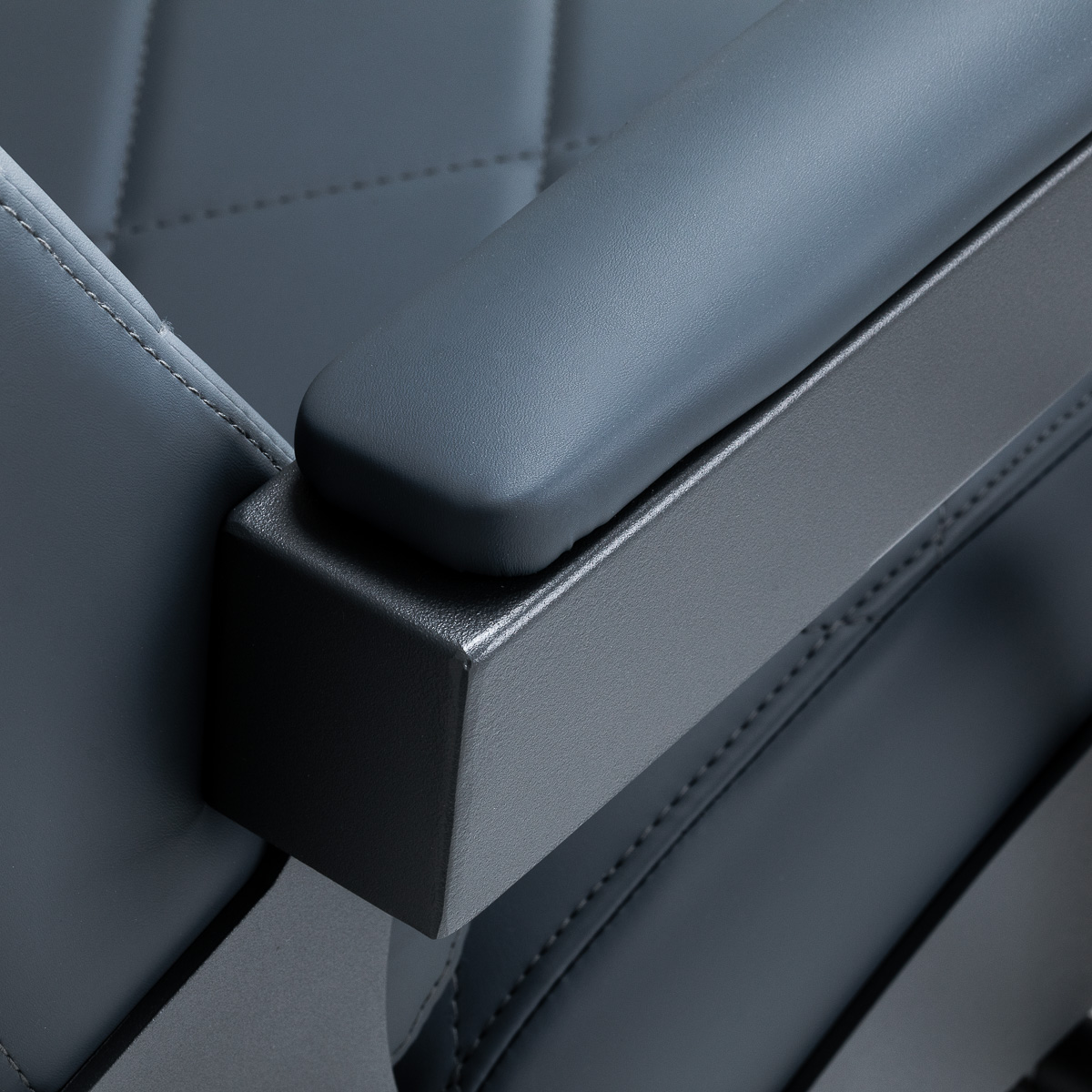 Die stabile Struktur sorgt für Sicherheit und lange Lebensdauer der Möbel. Die Sitzfläche ist mit verformungsbeständigem Schaumstoff gefüllt und eine Polsterung aus weichem Kunstleder verleiht den Möbeln Langlebigkeit und Komfort. Die feuchtigkeitsbeständigen Materialien sind nicht nur langlebig, sondern auch leicht zu reinigen. Die graphitfarbene Polsterung in Kombination mit dem graphiten Gestell verleiht dem Stuhl ein modernes und professionelles Aussehen, und der minimalistische Stil ermöglicht es ihm, sich in die Einrichtung jedes Friseursalons einzufügen.