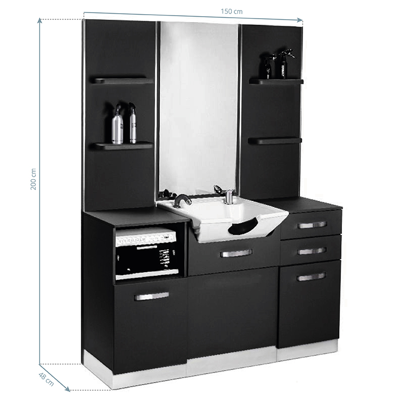 Produktinformationen "Gabbiano Friseurbedienplatz mit Waschbecken b085 schwarz"