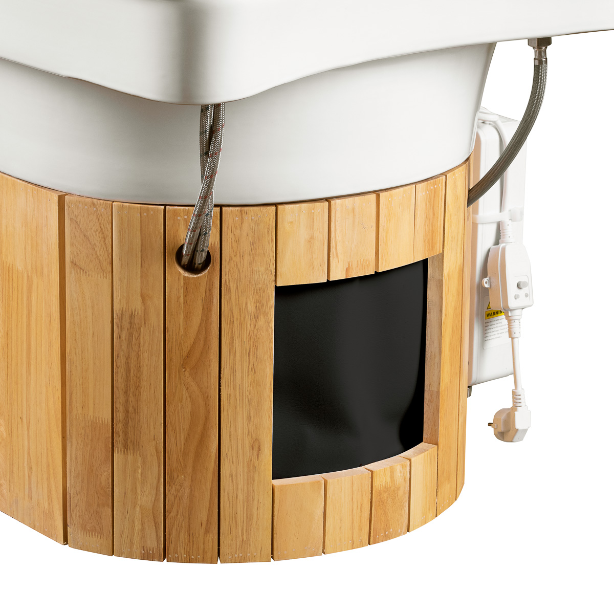 Die stilvolle Gabbiano Head Spa Bali Chaiselongue mit integrierter Waschanlage ist eine zukunftsweisende Lösung für hochwertige Haut- und Entspannungspflege. Sie eignet sich ideal für Japanese Head SPA, Hydrotherapie, Wassermassagen, Aromatherapie sowie Dampfbehandlungen und schafft ein vollständiges Verwöhn- und Regenerationserlebnis. Ebenso unterstützt sie professionelle Körpermassagen und therapeutische Anwendungen aller Art. Innovative Technologie kombiniert mit ergonomischem Design gewährleistet nicht nur außergewöhnlichen Kundenkomfort, sondern optimiert auch die Arbeitseffizienz von Wellness- und Beauty-Fachkräften. Das elegante Design aus natürlichem Holz mit hochwertiger schwarzer Polsterung vermittelt Luxus und garantiert höchsten Liegekomfort.