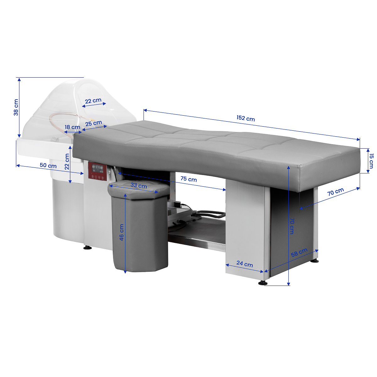 Gabbiano Friseurwaschbecken-Liege Head Spa 017 in Grau – Professionelles Waschbecken für Friseure