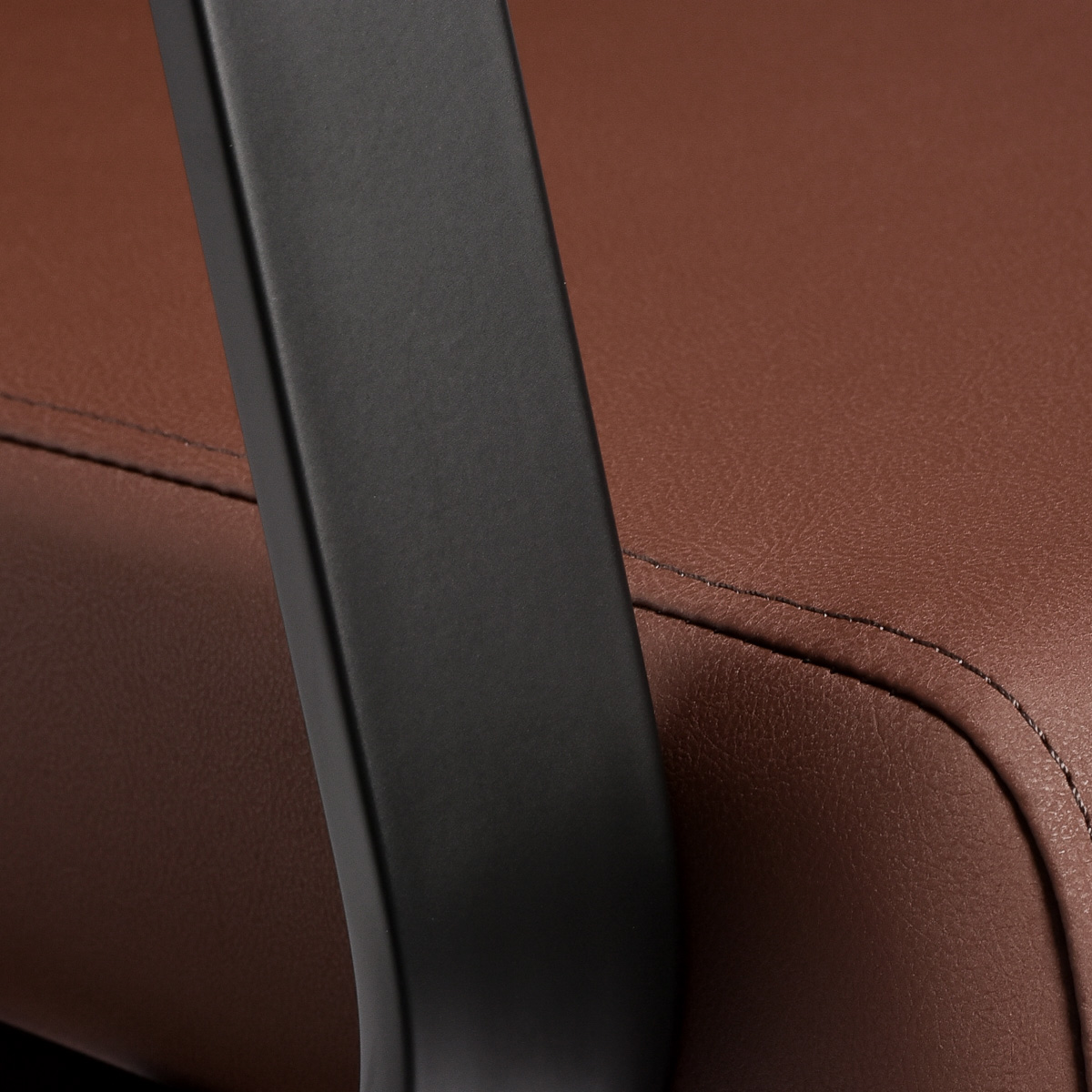 Die solide Konstruktion des Sockels sorgt für Stabilität und hohen Nutzungskomfort. Die Sitzfüllung aus verformungsbeständigem Schaumstoff und die Polsterung aus angenehm anzufassendem Kunstleder mit mattem Finish sorgen für die Langlebigkeit des Möbels und dessen komfortable Nutzung über lange Zeit. Sie machen das Möbelstück auch feuchtigkeitsbeständig, langlebig und leicht zu reinigen. Die schwarze Beschichtung verleiht ihm einen einzigartigen Charakter, während der minimalistische Stil es ermöglicht, sich in das Interieur jedes Friseursalons einzufügen.