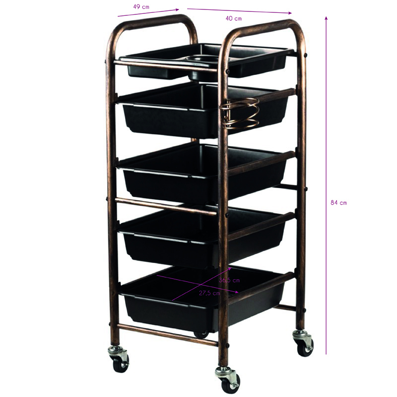 Der Gabbiano Friseurwagen in elegantem Altgold ist die perfekte Lösung für professionelle Friseurpraxen und Friseursalons. Mit seiner doppelseitigen Konstruktion bietet dieser praktische Salon-Wagen optimal genutzten Stauraum auf kleinstem Platz. Die vier geräumigen Aufbewahrungsladen ermöglichen eine übersichtliche Organisation Ihres kompletten Friseursortiments – von Scheren und Kämmen bis zu Styling-Produkten und Zubehör.