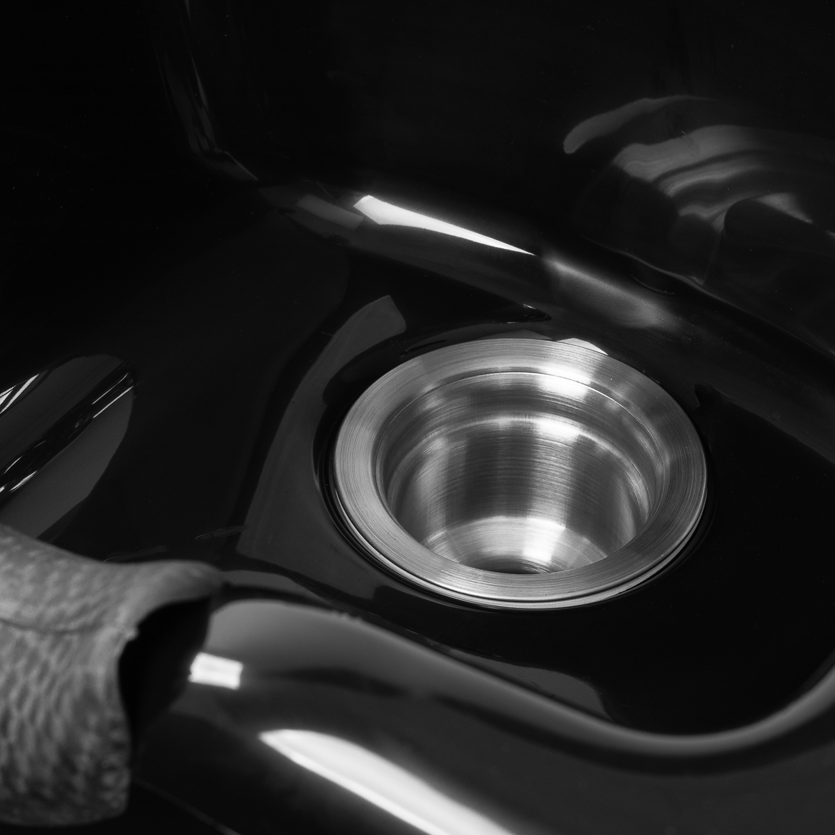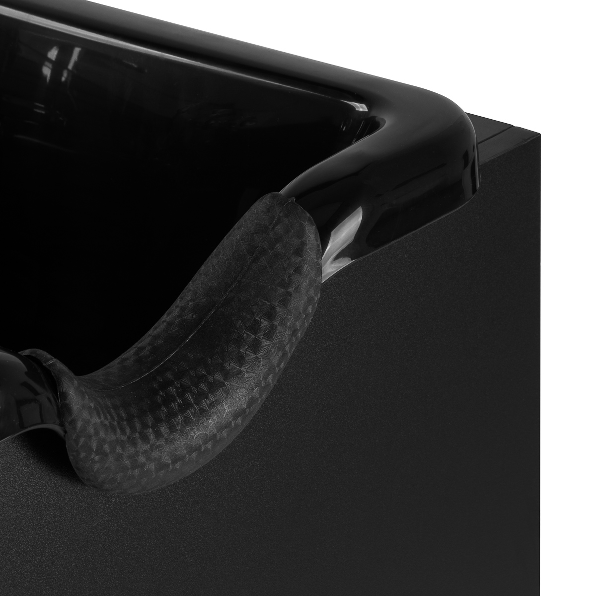Die tiefschwarze Waschschale aus hochwertigem, strapazierfähigem Kunststoff überzeugt durch extreme Widerstandsfähigkeit und pflegeleichte Reinigung. Das intelligente Schalen-Design minimiert Wasserspritzer effektiv während der Haarwäsche und beim Einsatz von Haarpflegeprodukten. Die ergonomisch geformte Schale mit konturiertem Silikonkragen bietet maximalen Kopfkomfort für Ihre Kunden. Eine praktische Ablage für den Duschkopf sorgt für optimale Arbeitsorganisation, während der Ablaufstöpsel mit integriertem Sieb Wasserdurchfluss reguliert und die Hygiene gewährleistet.