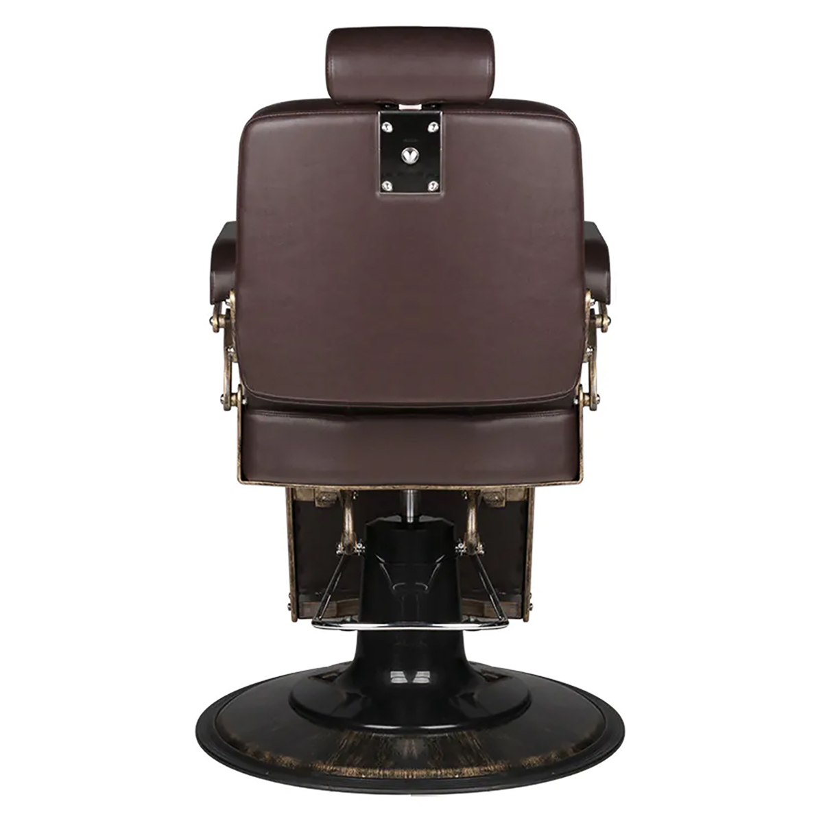 Die solide Konstruktion des Sockels sorgt für Stabilität und hohen Nutzungskomfort. Die Sitzfläche ist mit strapazierfähigem, verformungsbeständigem Schaumstoff gefüllt und mit angenehm anzufassendem Kunstleder bezogen, abriebfest und pflegeleicht, sorgt für eine lange Haltbarkeit der Möbel und Komfort auf höchstem Niveau. Die verwendeten Materialien machen den Stuhl feuchtigkeitsbeständig, langlebig und leicht zu reinigen. Stilvolle Polsterungen in Schwarztönen, dekorative Steppungen mit Knöpfen an der Rückenlehne und ein eleganter Fußhocker verleihen dem Sessel einen einzigartigen Charakter. Sein Vintage-inspiriertes Design fügt sich perfekt in die Atmosphäre klassischer Barbersalons ein und unterstreicht deren einzigartige Atmosphäre. Raffinierte Details, eine originelle Polsterstruktur und ein massives Gusseisengestell sorgen nicht nur für Ästhetik, sondern auch für maximale Stabilität, auch bei schweren Belastungen. Es ist eine Kombination aus Eleganz und Funktionalität, die die Erwartungen selbst der anspruchsvollsten Profis erfüllen wird.