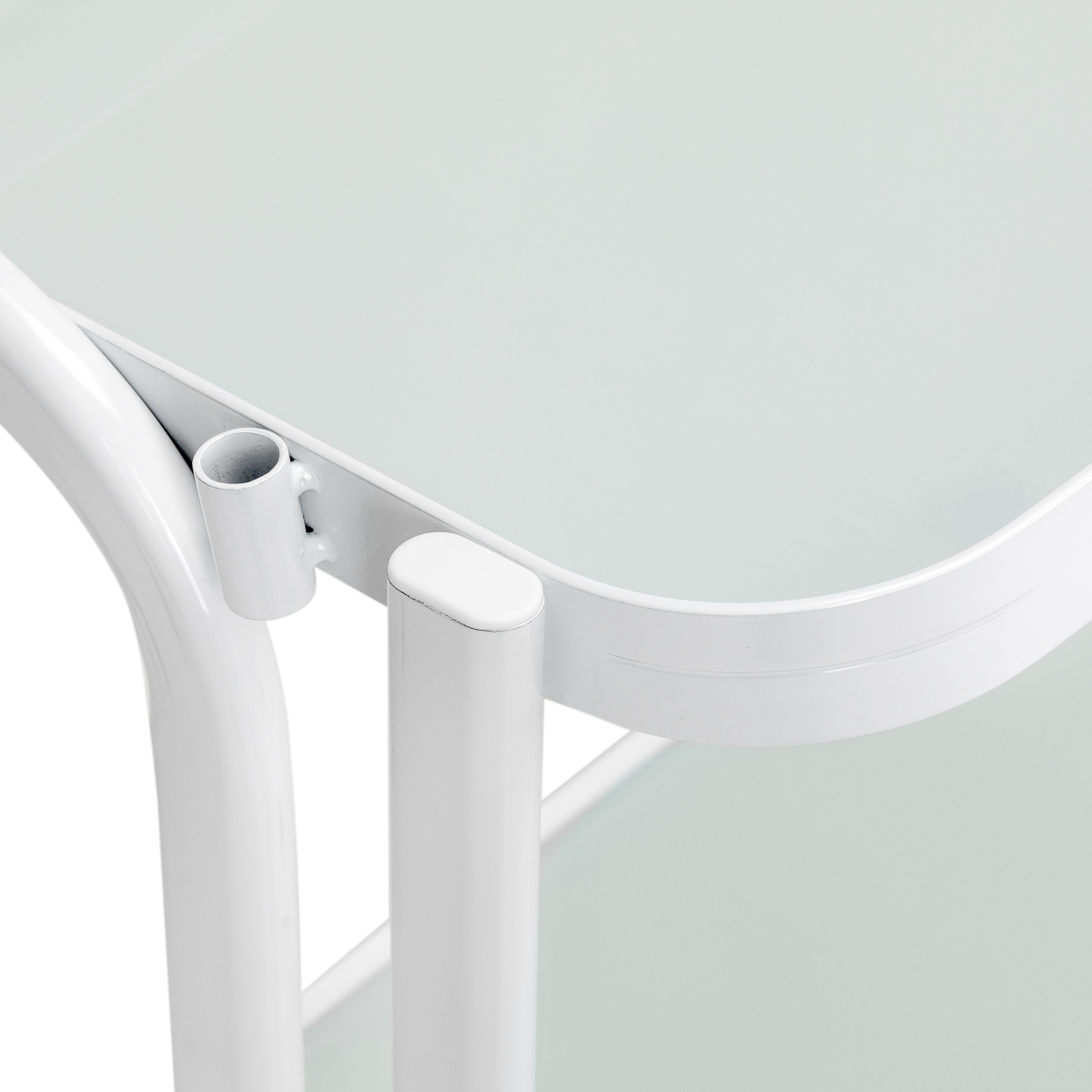 Das minimalistisch gehaltene Design des Giovanni H6701 mit strapazierfähigem Aluminiumgestell in Weiß und hochwertigen Glaselementen ermöglicht hygienische Reinigung und Desinfektion – essentiell für den Salonbetrieb. Vier schwenkbare Lenkrollen gewährleisten unkomplizierte Beweglichkeit zwischen Behandlungsplätzen und Waschbereich. Die langlebigen Materialien versprechen Jahre zuverlässiger Nutzung ohne Verschleiß. Das elegant abgestimmte Gesamtdesign mit geschwungenen Elementen schafft einen anspruchsvollen Look, der die Professionalität Ihres Salons unterstreicht.
