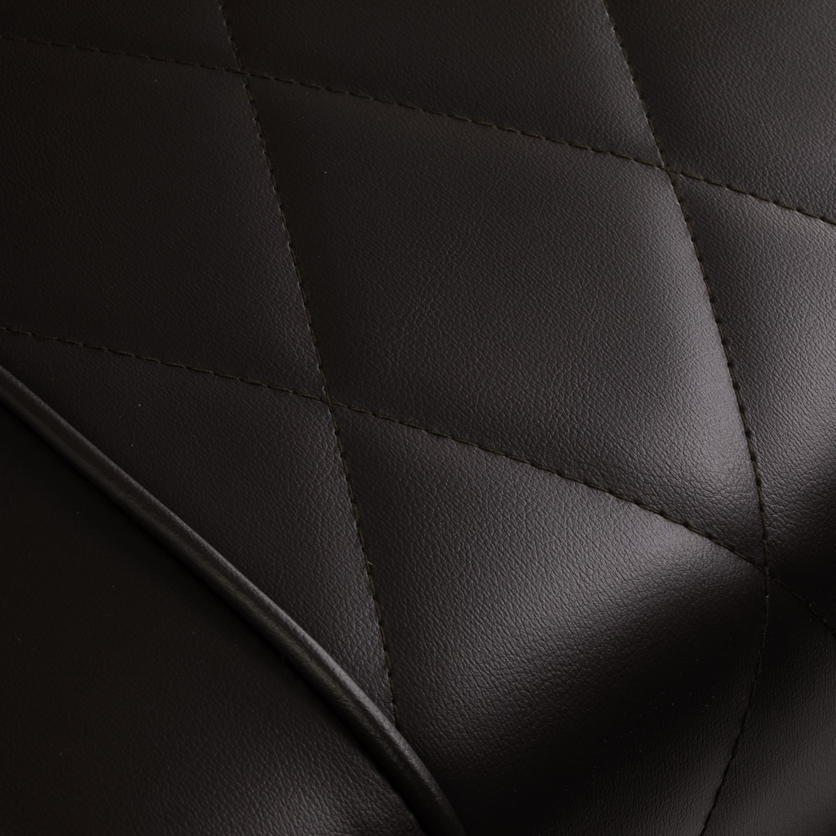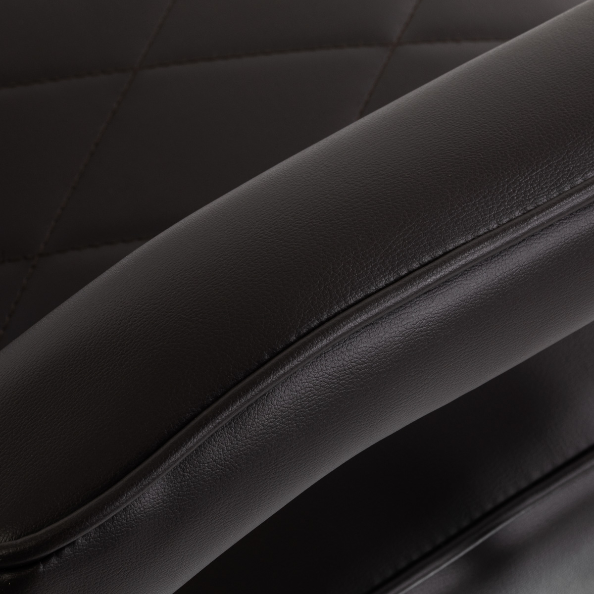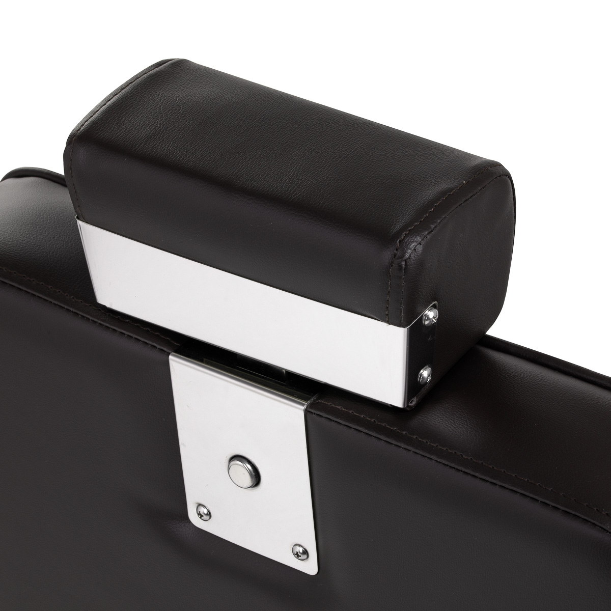 Die solide Konstruktion des runden Standfußes sorgt für Stabilität und hohen Bedienkomfort. Die Sitzfüllung aus verformungsbeständigem Schaumstoff und die Polsterung aus angenehm anzufassendem Kunstleder mit mattem Finish garantieren die Langlebigkeit des Möbels und seine komfortable Nutzung für lange Zeit. Stilvolle Nähte an den Polstern verleihen dem Sitz Charakter, der an automobiles Design erinnert und sein elegantes Erscheinungsbild unterstreicht. Außerdem machen sie die Geräte feuchtigkeitsbeständig, langlebig und leicht zu reinigen. Die braune Abdeckung verleiht ihm einen einzigartigen Charakter, und der minimalistische Stil ermöglicht es, dass er sich in die Einrichtung jedes Friseursalons einfügt.