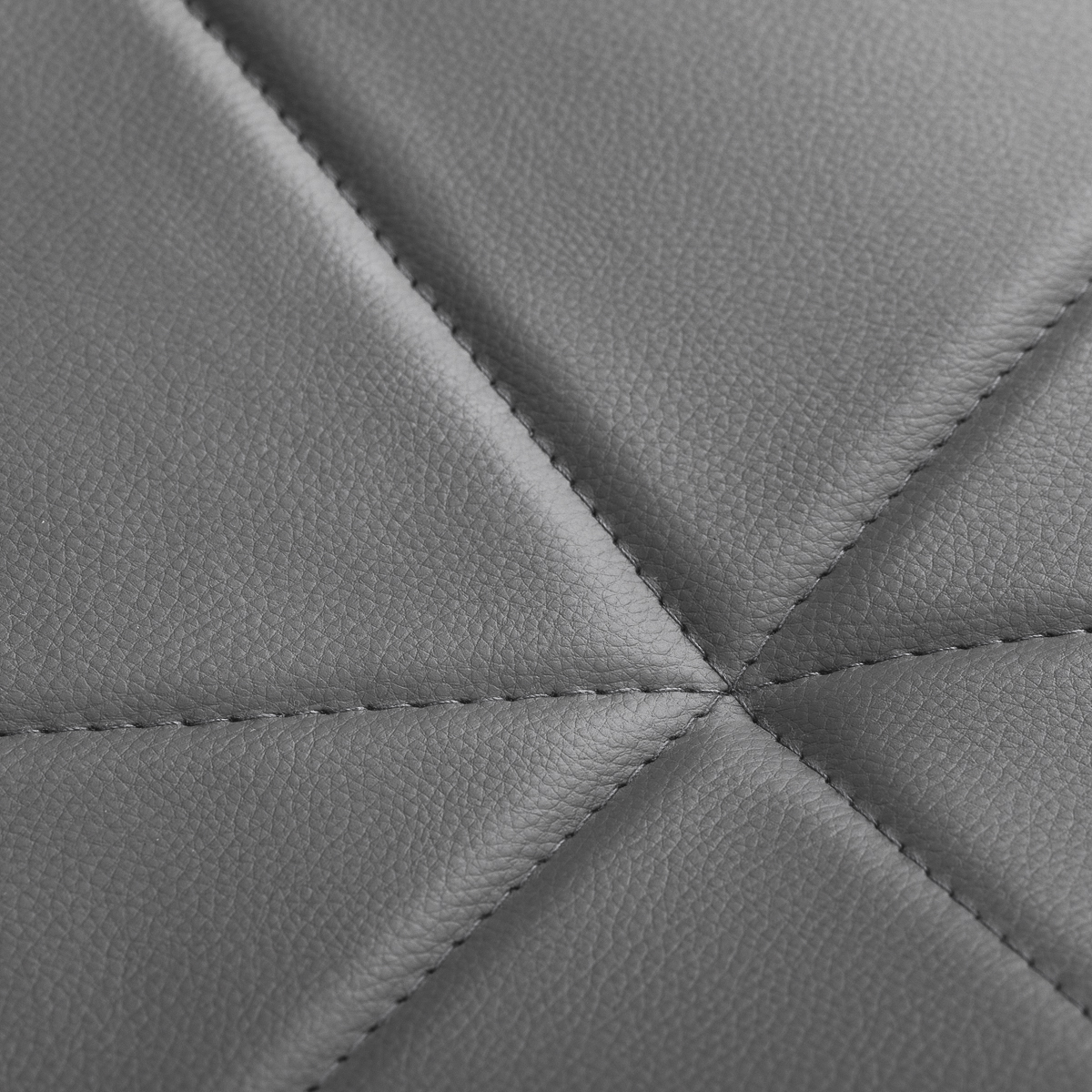 Die fünfarmige Chromfuß-Basis ist mit gummierten Leichtlaufrollen ausgestattet, die mühelose Mobilität im Salon ermöglichen. Die Sitzfläche wurde mit hochwertiger, grauer Kunstleder-Polsterung bezogen – ein Material, das Langlebigkeit, Feuchtigkeitsresistenz und unkomplizierte Reinigung gewährleistet. Die eleganten Ziernähte unterstreichen das moderne, professionelle Design des Taborets.