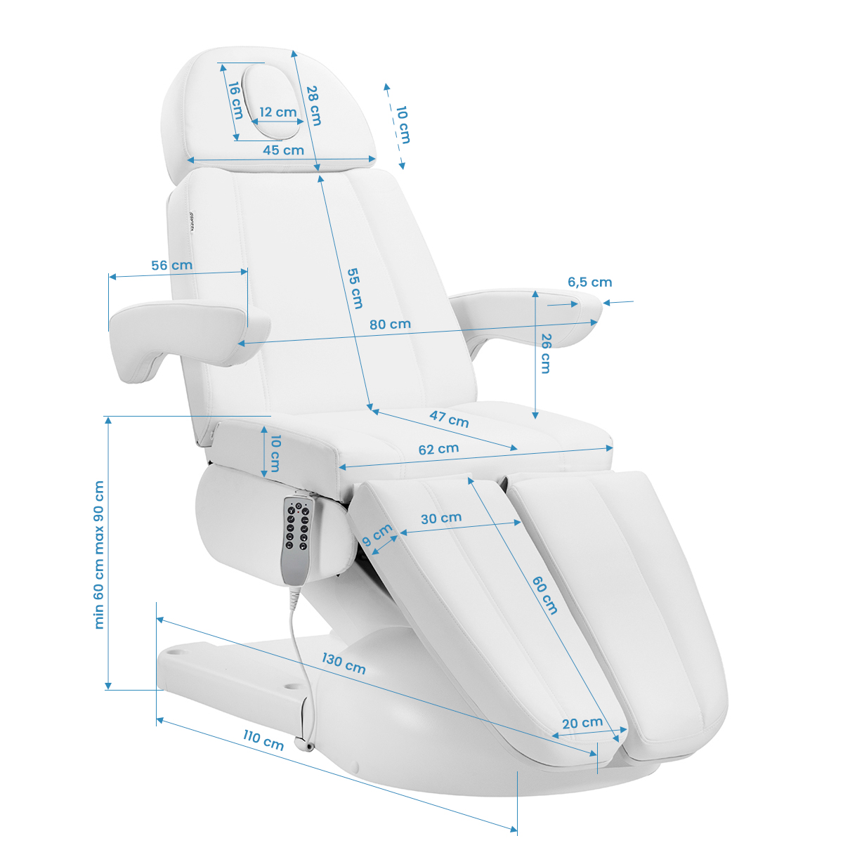 Die elektrische Kosmetikliege AZZURRO Lux ist speziell für anspruchsvolle Fachleute konzipiert und bietet maximale Flexibilität im Behandlungsalltag. Drei schnurgesteuerte Elektroantriebe ermöglichen millimetergenaue und absolut störungsfreie Verstellungen aller Liegen-Komponenten. Die robuste Konstruktion garantiert höchste Stabilität und vielseitige Einsatzmöglichkeiten in Beauty-Studios, Podologie-Praxen und der ästhetischen Medizin. Intuitive Bedienung und umfangreiche Verstelloptionen passen die Liege optimal an die Anforderungen von Klienten und Behandelnden an.