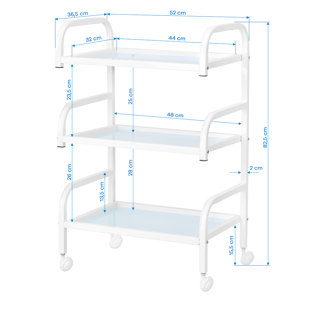 Der Basic 121 Kosmetikwagen kombiniert Funktionalität mit elegantem Design. Die drei großzügigen Glasböden bieten ausreichend Platz für Kosmetikprodukte, Haarpflegeartikel, Accessoires und professionelle Geräte. Die leichte Konstruktion ermöglicht müheloses Verschieben und flexible Raumgestaltung. Das minimalistische und moderne Erscheinungsbild verleiht jedem Salon eine professionelle Atmosphäre und unterstreicht Ihre hohe Qualitätsstandards.