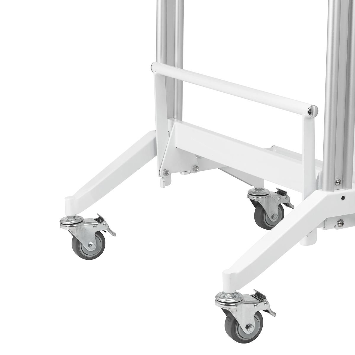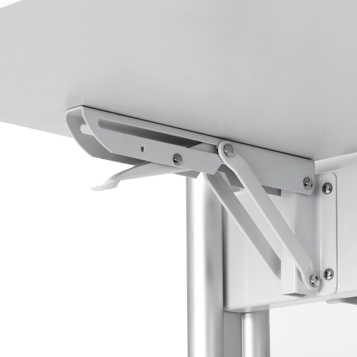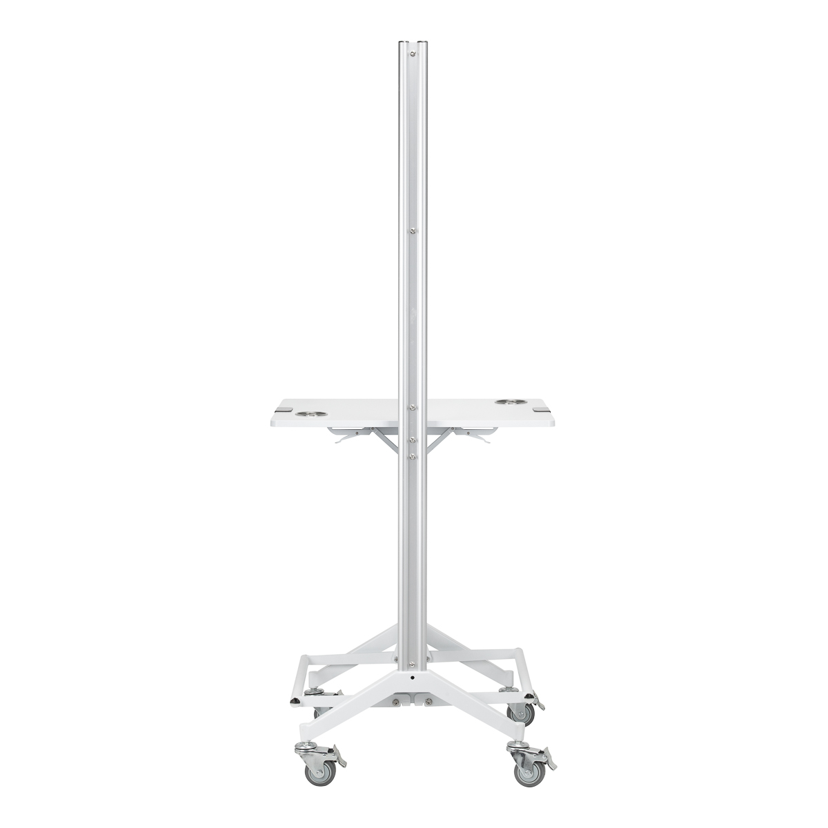 Das praktische Klappregal in einer Höhe von 90 cm ist einer der Hauptvorteile der MI-03 Konsole, die Platz spart und gleichzeitig funktionalen Stauraum bietet. Darüber hinaus sorgen das doppelseitige Design und die feststellbaren Räder für Mobilität und einfaches Bewegen der Konsole. Die Löcher in der Ablage dienen als Halterung für den Trockner, was ihn noch praktischer und an die Bedürfnisse von Profis in der Friseurbranche angepasst macht.