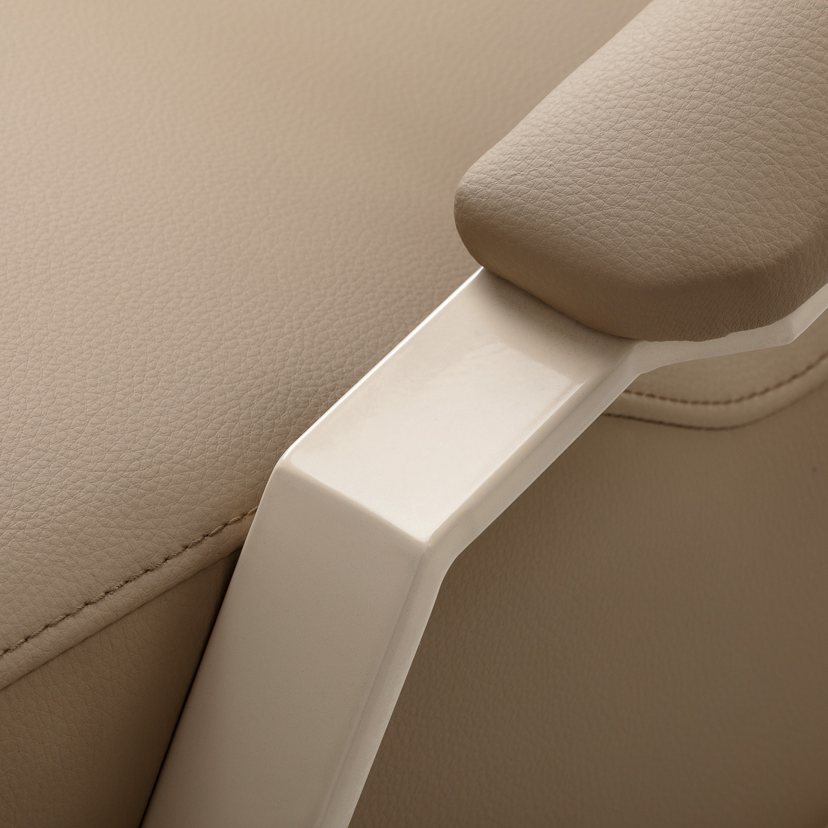Der Friseurwaschplatz Omega Marina verbindet minimalistisches Design mit praktischen Lösungen, die den Komfort der täglichen Arbeit unterstützen. Die integrierte Konstruktion sorgt für Stabilität und ein einheitliches, ästhetisches Erscheinungsbild des Arbeitsplatzes, während sich die abgerundete Form perfekt in moderne Einrichtungsstile von Friseur- und Barbersalons einfügt. Der ergonomisch geformte Sitz ermöglicht dem Kunden eine bequeme, halb liegende Position, und die passende Fußstütze erhöht den Komfort während der Behandlung zusätzlich. Der Stuhl ist mit einer bequemen Rückenlehne und geformten Armlehnen ausgestattet, was für stabilen Halt sorgt und den Komfort bei der Nutzung des Friseurwaschplatzes erhöht.