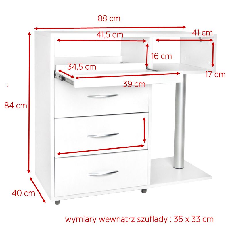 Der professionelle Kosmetikwagen von AZZURRO ist eine hochwertige Lösung für Friseur- und Kosmetiksalons. Das robuste Möbelstück besticht durch seine durchdachte Konstruktion mit mehreren Schubladen für optimale Materialorganisation. Die spezielle UVC-Sterilisator-Schublade ermöglicht eine hygienische Lagerung von Desinfektionsinstrumenten, während die integrierte Ablage perfekt für Ihr Fräsgerät geeignet ist. Mit diesem Wagen schaffen Sie Ordnung und Effizienz an Ihrem Arbeitsplatz.