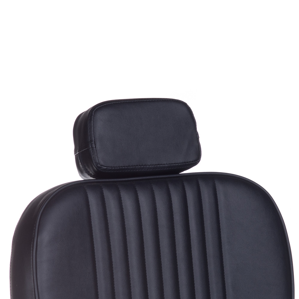 Die hydraulische Höhenverstellung ermöglicht eine stufenlose Anpassung zwischen 49 und 62 cm Sitzhöhe, wodurch sich der Stuhl optimal an verschiedene Körpergrößen anpassen lässt. Die verstellbare Rückenlehne bietet zusätzlichen Komfort und kann je nach Behandlungsart individuell positioniert werden. Das herausnehmbare Kopfstützen-Element erleichtert die Reinigung und ermöglicht eine flexible Nutzung des Barberstuhls. Die integrierte Fußstütze sorgt für eine entspannte Körherhaltung des Kunden, während die verchromte Basis für maximale Stabilität und ein professionelles Erscheinungsbild sorgt.