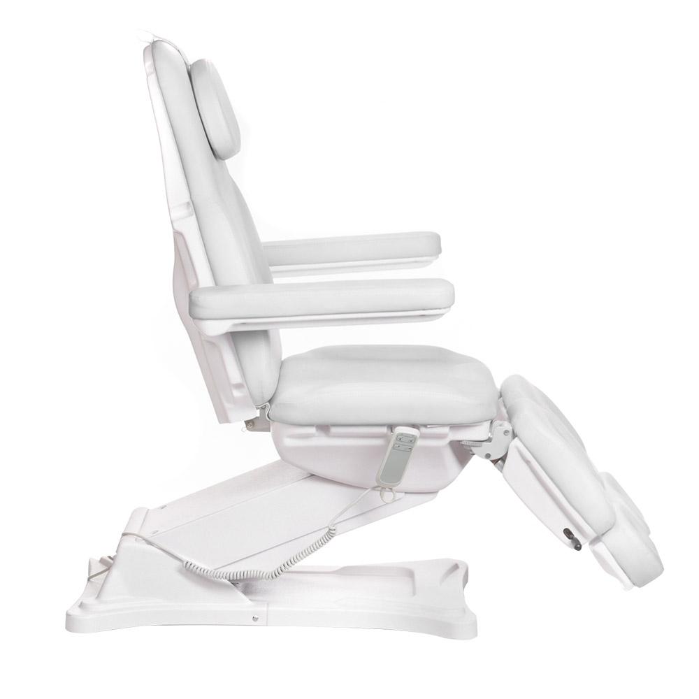 Die elektrische Höhenverstellung erfolgt stufenlos über zwei unabhängige Elektromotoren, die eine präzise Anpassung der Liege zwischen 58 und 81 cm ermöglichen. Das Rückenteil lässt sich elektrisch um 0-85° neigen, während die Pediküre-Funktion durch zwei hydraulische Aktuatoren realisiert wird, die das Fußteil um 0-80° verstellen können. Die Fernbedienung ermöglicht eine komfortable Steuerung der elektrischen Funktionen, ohne den Behandlungsablauf zu unterbrechen. Die stabile Rahmenkonstruktion mit einer Grundfläche von 92 x 56 cm gewährleistet optimale Standsicherheit. Die verwendeten Polstermaterialien sind speziell für den professionellen Einsatz ausgewählt und lassen sich mühelos reinigen und desinfizieren.