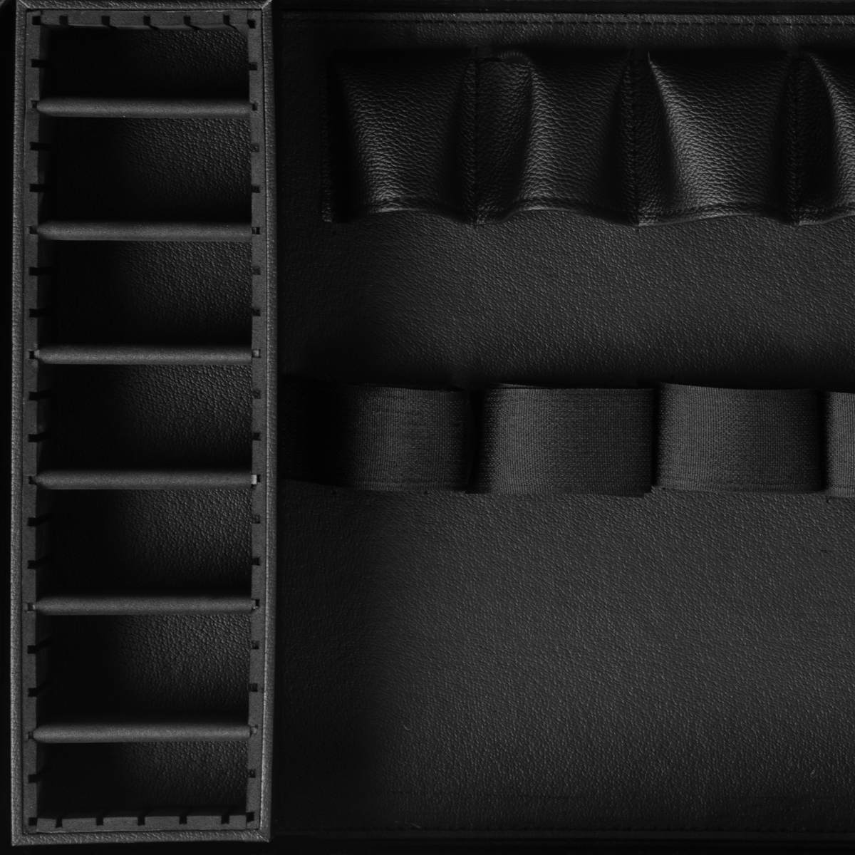Das hochwertige Friseuretui überzeugt mit langlebigen und leichten Materialien, die sowohl Schutz als auch Mobilität garantieren. Die wasserbeständige Oberflächenbehandlung macht das Case besonders pflegeleicht und widerstandsfähig gegen Feuchtigkeit – ideal für den täglichen Einsatz im Friseursalon. Sicherheitselemente im Inneren halten Ihre wertvollen Werkzeuge auch während des Transports fest in Position. Der ergonomisch geformte Griff ermöglicht komfortables Tragen, während die robuste Konstruktion maximale Haltbarkeit über Jahre hinweg gewährleistet. Dank der einfachen Reinigung und des großzügigen Platzangebots ist das T-08-1 Organizer der ideale Begleiter für jeden Friseurfachmann – ob im eigenen Studio oder auf dem Weg zu Kundinnen.