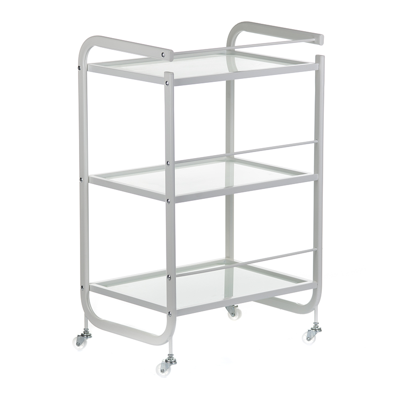 Dieser hochwertige Friseur- und Kosmetikwagen ist ein unverzichtbares Salonmöbel für professionelle Beauty-Salons und SPA-Einrichtungen. Der elegante Schrank und Beistellwagen kombiniert praktische Funktionalität mit ansprechendem Design und bietet optimale Mobilität durch integrierte Rollen. Mit drei geräumigen Glasböden stellt er die perfekte Lösung für die Organisation und den Transport von Kosmetikprodukten und Werkzeugen dar.