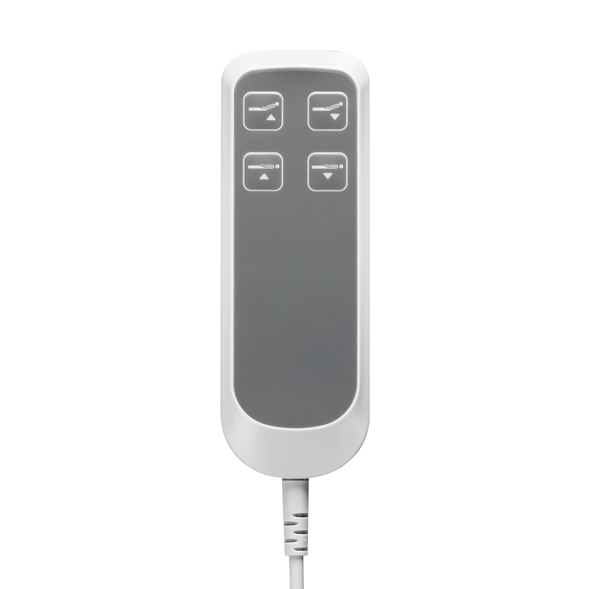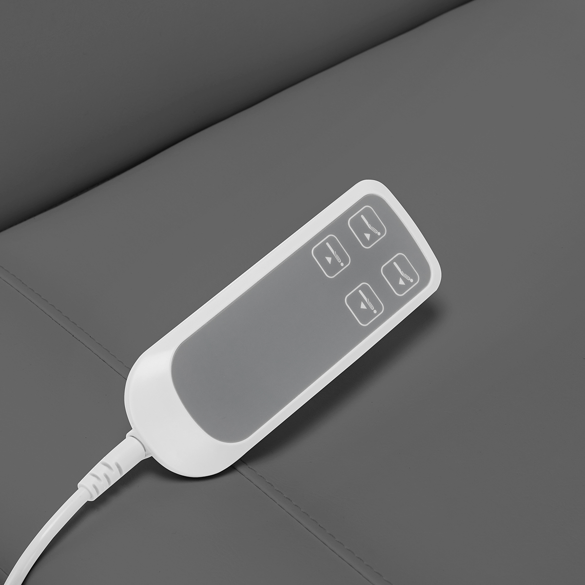Die mitgelieferte benutzerfreundliche Fernbedienung ermöglicht eine stufenlose Verstellung der Liege in zwei unabhängigen Ebenen – Höhe und Rückenlehne lassen sich individuell einstellen. Die Sitzhöhe variiert zwischen 61 cm und 84 cm, die Gesamtlänge im ausgefahrenen Zustand beträgt 2 Meter. Diese großzügigen Abmessungen machen die Liege für Personen unterschiedlichster Körpergrößen geeignet und ermöglichen eine optimal angepasste Positionierung für jede Behandlung. Praktische Griffe auf beiden Seiten bieten einen sicheren Platz für die Fernbedienung – immer griffbereit und griffsicher.