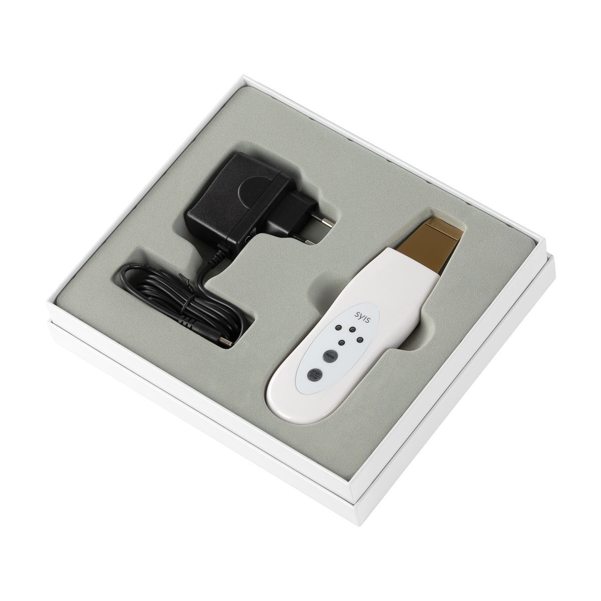 Produktinformationen "SYIS Dermo Lift & Peel Skin Scrubber mit Goldspatel – Ultraschall-Gesichtsreinigung"