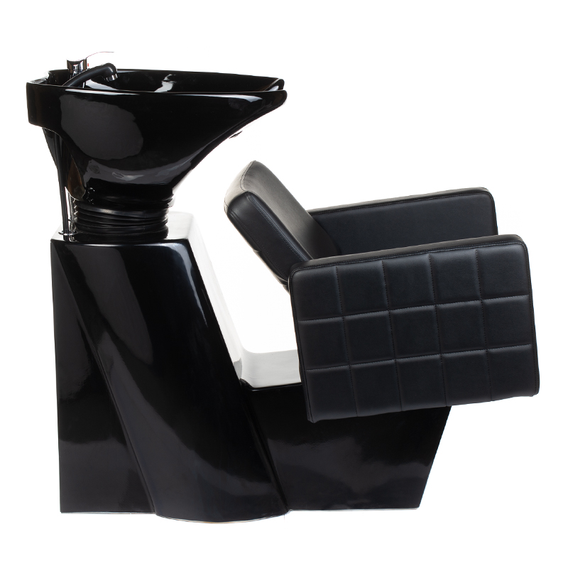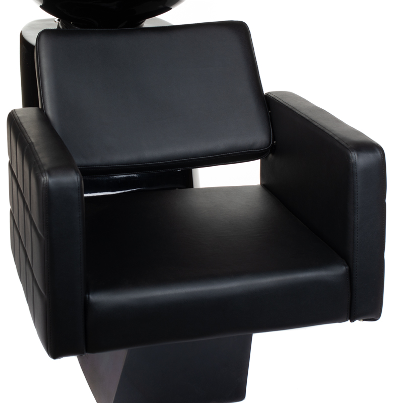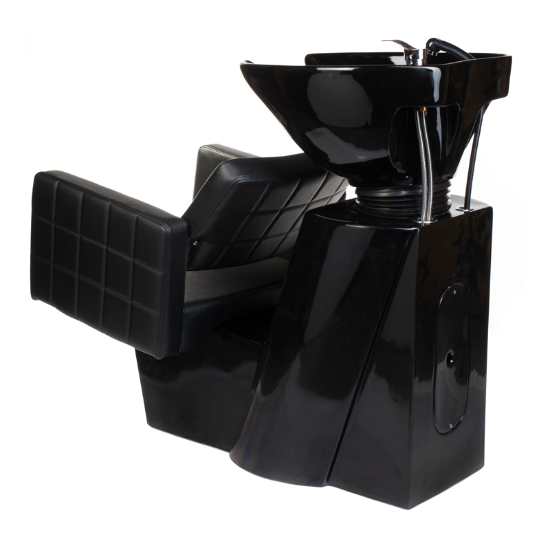 Die Waschschale mit regulierbarem Neigungswinkel passt sich optimal an verschiedene Kundenbedürfnisse an. Die ausziehbare Brause mit Armatur ermöglicht eine professionelle Haarwäsche mit perfekter Wasserführung. Das verlängerte Sitzpolster aus Kunstleder bietet auch bei längeren Behandlungen höchsten Komfort. Die flexible Anschlussmöglichkeit von hinten oder unten erleichtert die Installation erheblich und passt sich verschiedenen Salon-Layouts an.