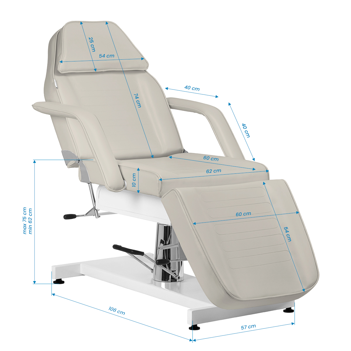 Die Sitzhöhe lässt sich mittels kraftsparender Hydraulikpumpe im Bereich von 62 bis 75 cm flexibel verstellen. Diese Eigenschaft macht den Stuhl für Personen unterschiedlicher Körpergröße ideal geeignet und ermöglicht die perfekte Anpassung an Kundenbedürfnisse und therapeutische Anforderungen. Der bewährte Hydraulikmechanismus besticht durch Zuverlässigkeit und lange Lebensdauer. Das durchdachte Loch in der Kopfstütze ermöglicht auch komfortable Rückenbehandlungen und Massagen ohne Einschränkungen.